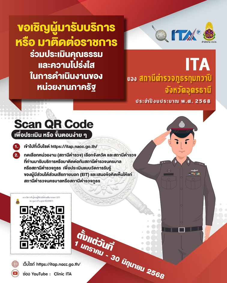 รอง ผบก.ภ.จว.อุดรธานี ออกตรวจประเมินตามแบบตรวจราชการของสำนักงานจเรตำรวจแห่งชาติ ประจำปี 2568สภ.กุมภว