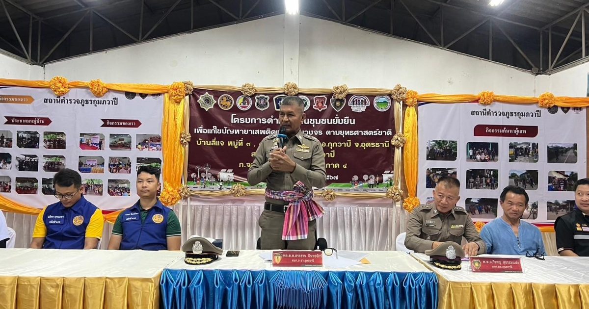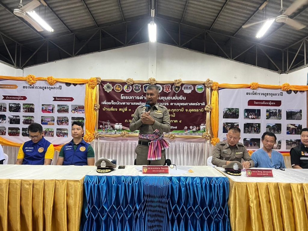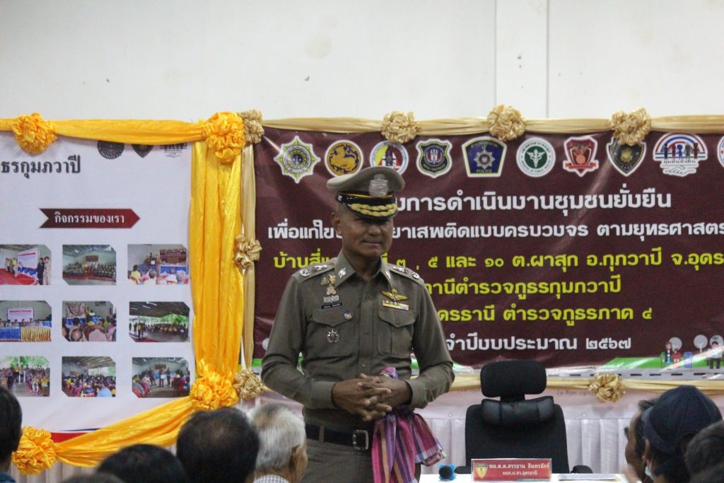 วันที่ 3 กรกฎาคม 2567 เวลา 19.00 น. พล.ต.ต.สรรธาน อินทรจักร์ ผบก.ภ.จว.อุดรธานี ตรวจเยี่ยม โครงการบำบัดชุมชนอย่างยั่งยืนในพื้นที่ระบาดยาเสพติดตามนโยบายเร่งด่วนของรัฐบาล ในพื้นที่สภ.กุมภวาปี