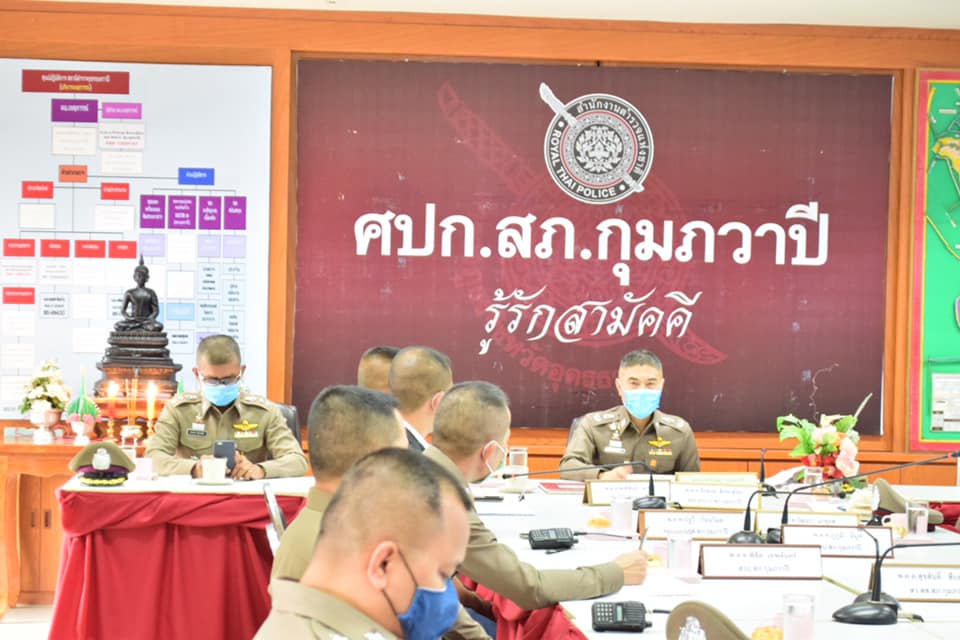 สภ.กุมภวาปี วันที่ 16 เมษายน 2563 เวลา 14.00 น. พ.ต.อ.พงศ์พันธ์ นาขวา ผกก.สภ.กุมภวาปี พร้อมข้าราชการตำรวจ แม่บ้านตำรวจ สภ.กุมภวาปี ให้การต้อนรับ พล.ต.ต.พิษณุ อุณหเสรี ผบก.ภ.จว.อุดรธานี ,พ.ต.อ.สรรธาน อินทรจักร์ รอง ผบก.ภ.จว.อุดรธานี ในโอกาสที่เดินทางมาตรวจเยี่ยม เพื่อมอบแนวทาง นโยบายในการปฏิบัติหน้าที่